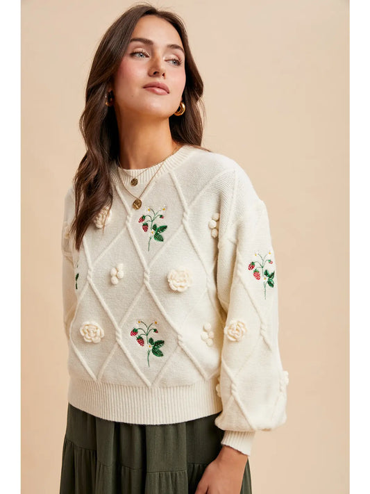 Embroidered Cable Pullover Sweater