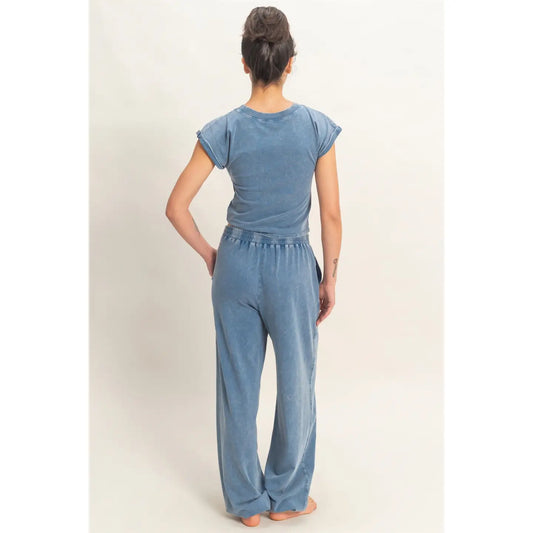 Rachel Rolled Sleeve Wrap-Front Crop Top and Jogger Set
